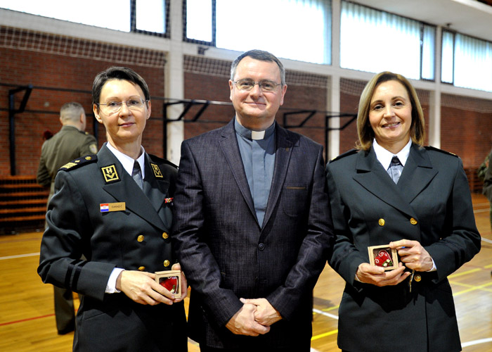 Zapovjednik Počasno-zaštitne bojne, brigadir Slobodan Kratohvil zahvalio je biskupu Jurju Jezerincu na dolasku, darujući mu prigodni poklon - crvenu beretku Počasno-zaštitne bojne kao znak bliske suradnje između ove postrojbe i Vojnog ordinarijata koja postoji više od 20 godina i osobito je prepoznatljiva prilikom međunarodnog vojnog hodočašća u Lourdes te hodočašća hrvatske vojske i policije u Mariju Bistricu.